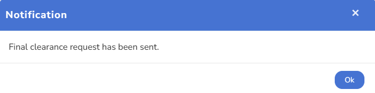 ● Click the Submit clearance button. A message suggesting that the final clearance request has been sent appears on the screen.
