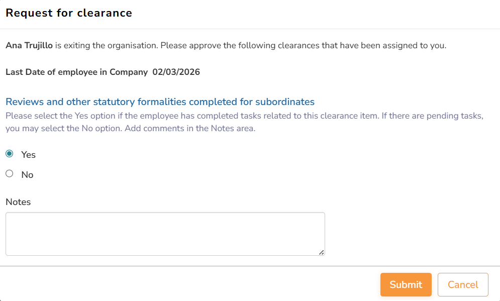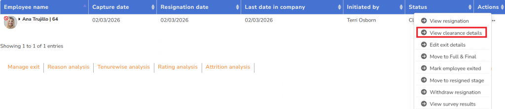 ● When the clearance from all departments is given, the HR manager gets notified. Click View to see the status of clearance from other departments, too.