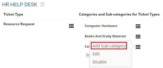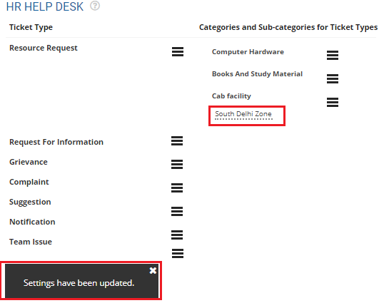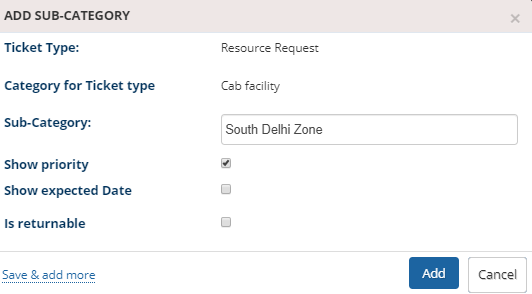You can now add sub categories to the category, by following the same steps that you had followed to add a category to the Ticket type.