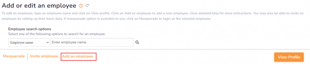 ● From the quick access icons on the top, open Role and features menu and click Add or edit an employee. A page appears.
