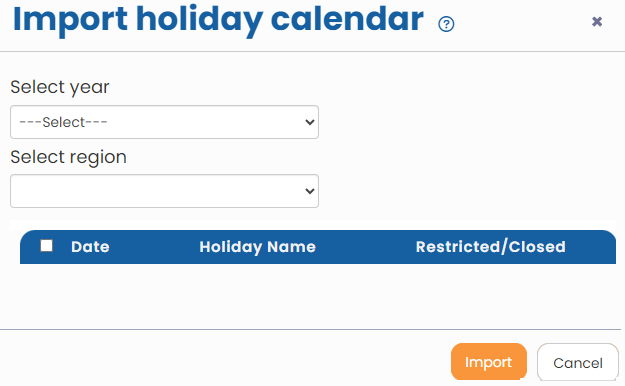 Select a geography from the Select region dropdown. All the holidays for a specific region and the selected year are listed.