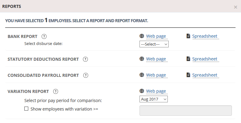 - Select all employees and click Reports to view bank and other payroll reports. Learn more about pre and post payroll reports here.