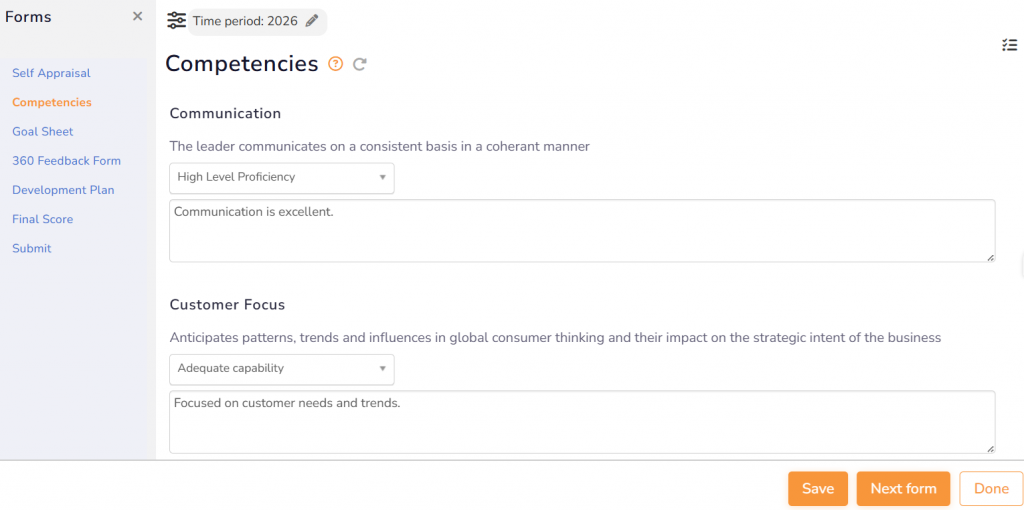 ● Click Next form to fill the next appraisal form.