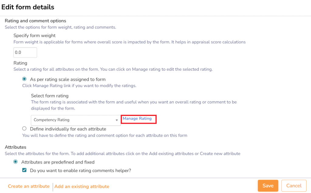 ● Modify the Label. The labels can be text strings or numeric values as per your requirements. The labels help employees and managers understand what a score implies.
