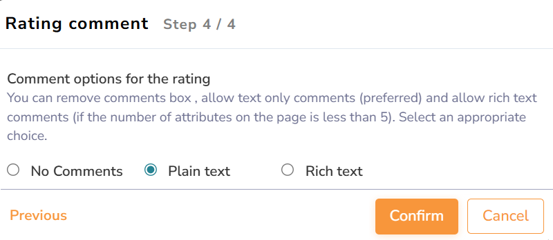 ● Click Next. The Rating comment tab will open. Select one of the available choices for the Comment options and then click Confirm. The rating is successfully modified and a message suggesting the same appears.