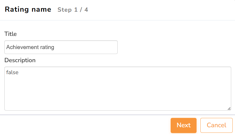 Provide the name of the rating in Title field and the description of the rating in the Description field.