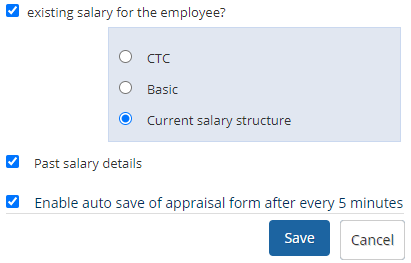 - Select Enable auto save of appraisal form after every 5 minutes checkbox to save the changes made in the appraisal form after every five minutes.